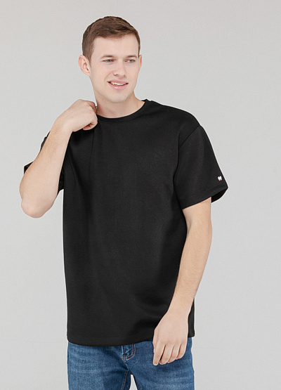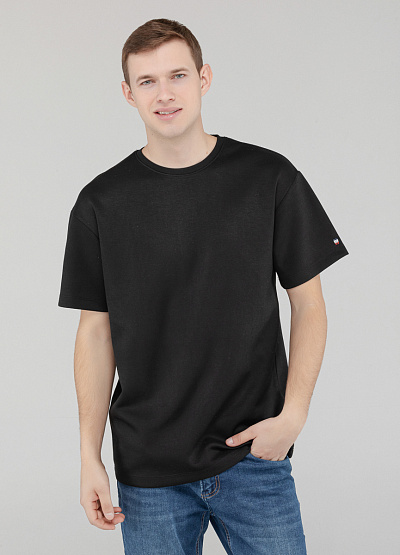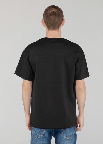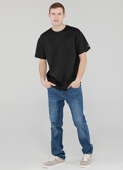 • Классическая мужская футболка прямого кроя в чёрном цвете — универсальный элемент гардероба, подходящий для любого стиля и повода. Модель выполнена из мягкого хлопкового трикотажа, обеспечивающего комфорт и хорошую воздухопроницаемость в течение дня. Лаконичный дизайн с круглым вырезом и короткими рукавами легко сочетается с джинсами, шортами, спортивными и повседневными брюками. Маленький логотип на рукаве добавляет аккуратный акцент.