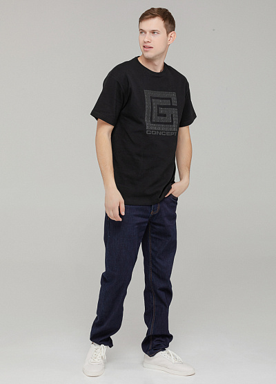 • Стильная мужская футболка в черном цвете — отличный выбор для тех, кто ценит комфорт и лаконичный дизайн. Модель выполнена из плотного хлопкового трикотажа, отличается аккуратной посадкой и современным внешним видом. На груди размещён объёмный текстурный логотип, который придаёт изделию характер и делает образ более выразительным. Идеально подходит для повседневной носки, прогулок и городских образов.