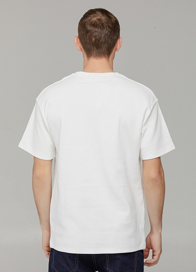 • Классическая белая футболка прямого кроя — универсальный элемент мужского гардероба. Модель выполнена из плотного хлопкового трикотажа, который приятно ощущается на теле и сохраняет форму после стирки. На груди — объёмный логотип в тон ткани, а внизу изделия — фирменная нашивка, добавляющая акцент и подчёркивающая оригинальность бренда. Футболка подходит для повседневной носки, прогулок, отдыха и неформальных встреч.