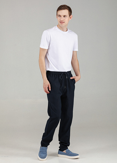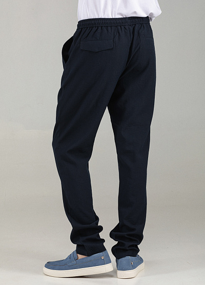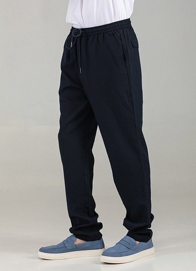 • Мужские брюки темно синего цвета от бренда Thomas Graf. Свободный крой. Эластичный пояс на шнурке. Боковые и задние карманы. Комфортная посадка создает удобство и позволяют свободно двигаться.