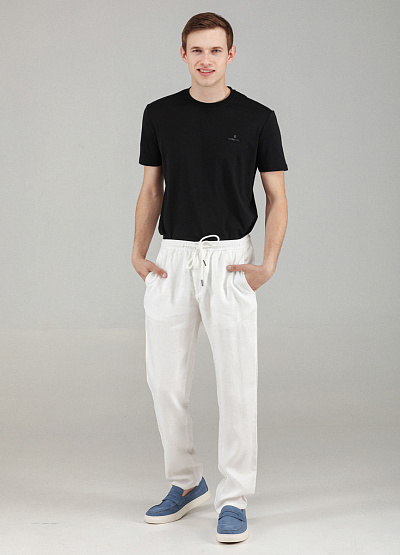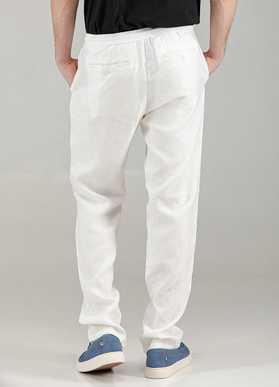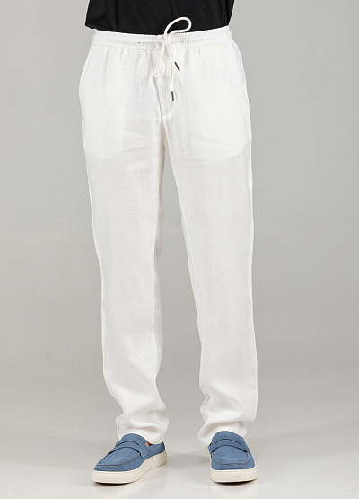 • Мужские брюки белого цвета от бренда Thomas Graf. Модель выполнена из льна. Свободный крой. Эластичный пояс на шнурке. Боковые и задние карманы. Комфортная посадка создает удобство и позволяют свободно двигаться.