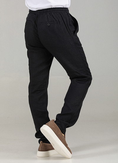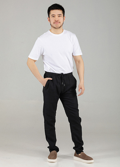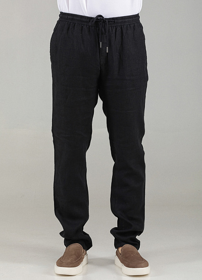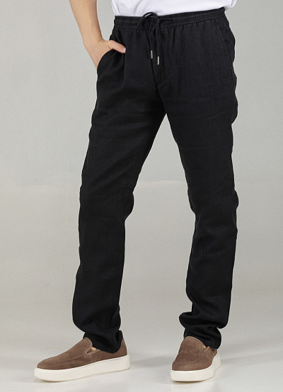 • Мужские брюки черного цвета от бренда Thomas Graf. Модель выполнена из льна. Свободный крой. Эластичный пояс на шнурке. Боковые и задние карманы. Комфортная посадка создает удобство и позволяют свободно двигаться.