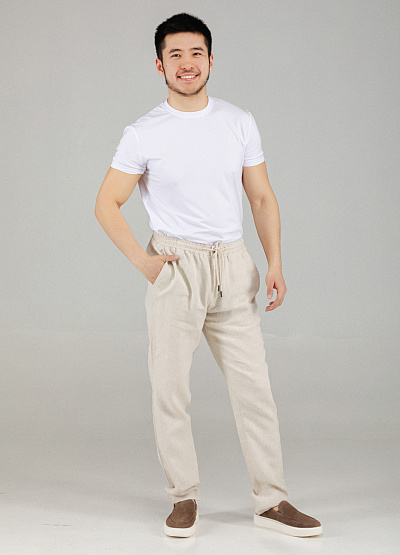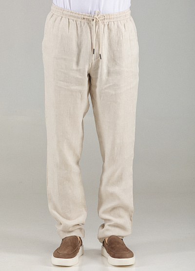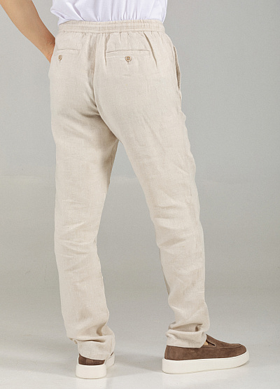 • Мужские брюки бежевого цвета от бренда Thomas Graf. Модель выполнена из льна. Свободный крой. Эластичный пояс на шнурке. Боковые и задние карманы. Комфортная посадка создает удобство и позволяют свободно двигаться.