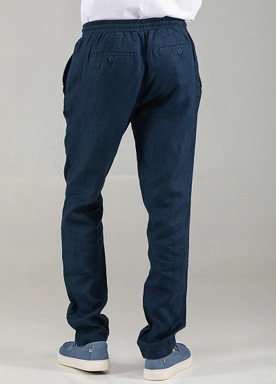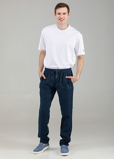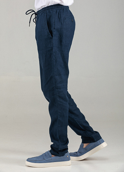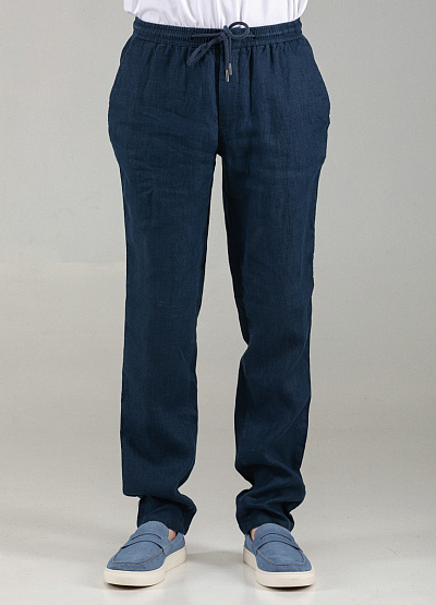 • Мужские брюки синего цвета от бренда Thomas Graf. Модель выполнена из льна. Свободный крой. Эластичный пояс на шнурке. Боковые и задние карманы. Комфортная посадка создает удобство и позволяют свободно двигаться.