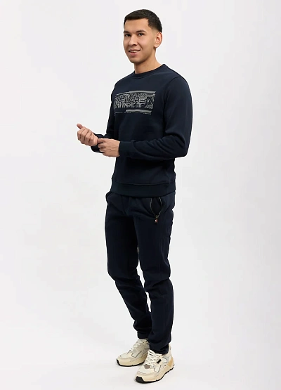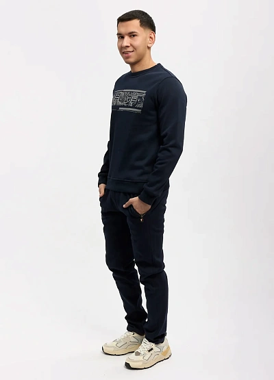 • Мужские брюки тёмно-синего цвета — практичная и стильная основа для повседневного гардероба. Модель выполнена в лаконичном дизайне с аккуратной посадкой, которая обеспечивает комфорт в течение всего дня. Плотный, мягкий материал хорошо держит форму и подходит как для активных будней, так и для спокойного отдыха.