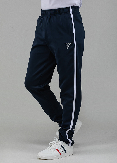 • Мужские спортивные брюки темно синего цвета от бренда Thomas Graf. Свободный крой. Эластичный пояс. Боковые карманы. Лампасы по бокам. Комфортная посадка создает удобство и позволяют свободно двигаться.