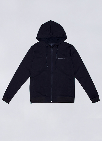 • Мужская спортивная толстовка от бренда Thomas Graf. Прямой крой. Модель застегивается на молнию по центру. Прорезные карманы по бокам. Капюшон на шнурке. Логотип на боковой части.