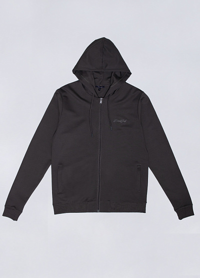 • Мужская спортивная толстовка от бренда Thomas Graf. Прямой крой. Модель застегивается на молнию по центру. Прорезные карманы по бокам. Капюшон на шнурке. Логотип на боковой части.