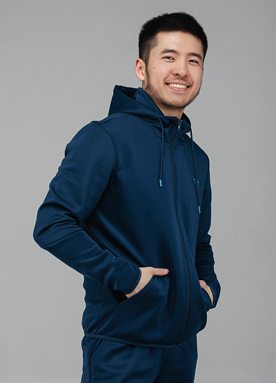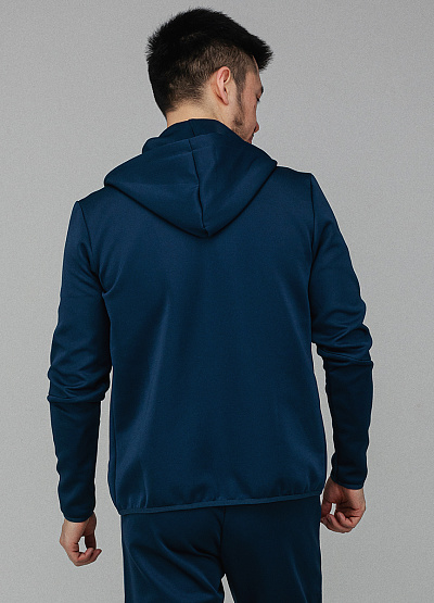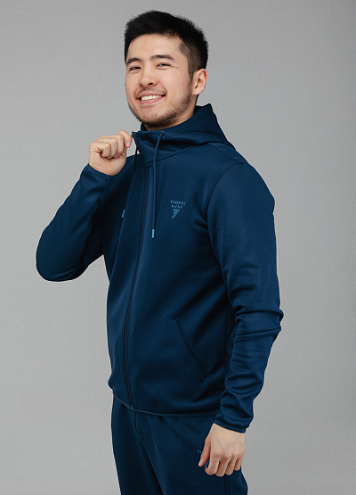 • Мужская спортивная толстовка темно-синего цвета от бренда Thomas Graf. Классическая форма с длинными рукавами, прямым кроем и с застежкой на молнию идеально подходит не только любителям спортивного стиля, но и отличный повседневный вариант для городских прогулок, загородного и домашнего отдыха, а капюшон защитит от непогоды.