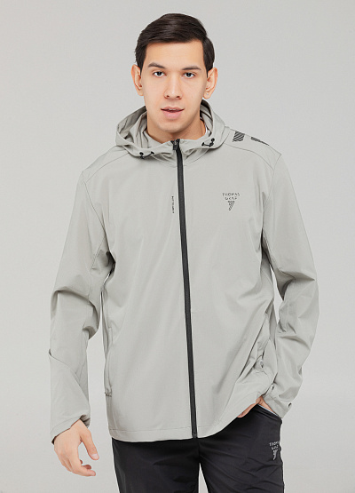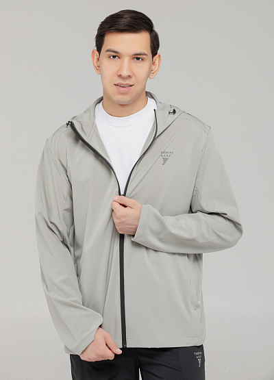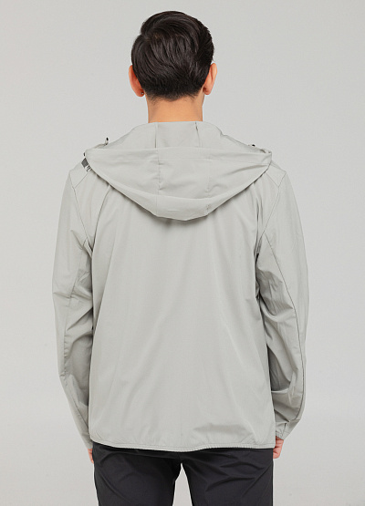 • Современная мужская ветровка в светло-сером цвете — легкий акцент в повседневном гардеробе.