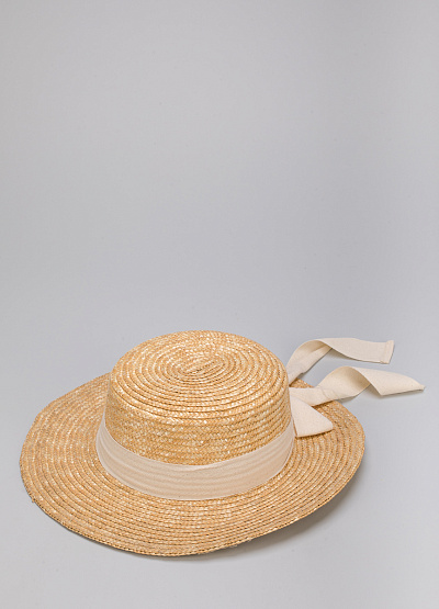 • Женская шляпа из искусственной соломы от бренда Pacco Rosso. Модель имеет удобные поля, защищающие от солнца. Высокая тулья. Плоское дно и комфортная фиксация на голове. Декоративная лента вокруг тульи.