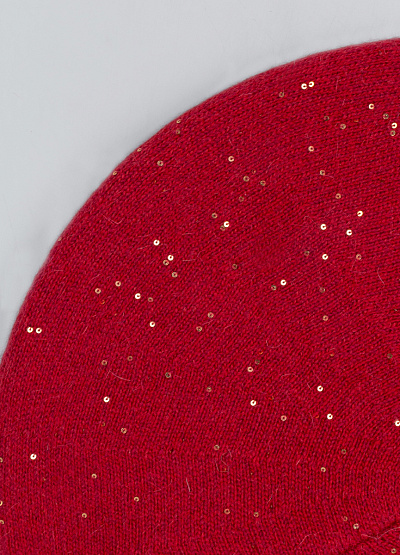 • Яркий берет Thomas Graf в насыщенном красном оттенке — эффектный акцент зимнего образа. Легкая пушистая вязка украшена россыпью золотистых пайеток, которые мягко мерцают при движении, создавая праздничное, выразительное настроение. Модель имеет классическую круглую форму и удобную посадку, позволяя сочетать берет как с элегантными пальто, так и с повседневными утеплёнными пуховиками.