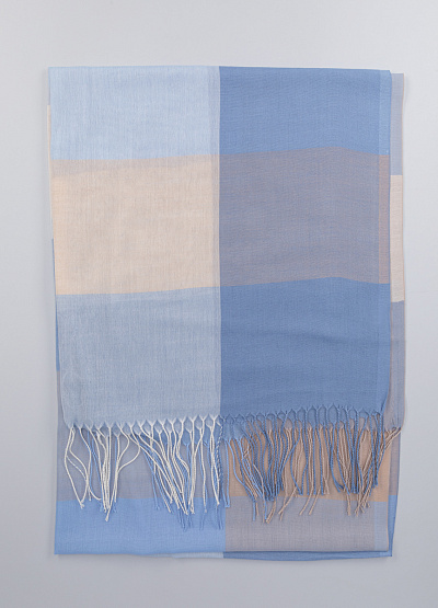• Женский шарф голубого цвета от бренда BB Accessories. Модель выполнена из легкой ткани. Украшен бахромой по краям. Это не только аксессуар, но и полезная вещь, особенно в прохладное времена года. Они помогают защитить от холода и ветра, а также могут быть стильным дополнением к вашей одежде.