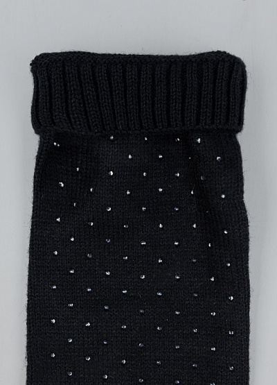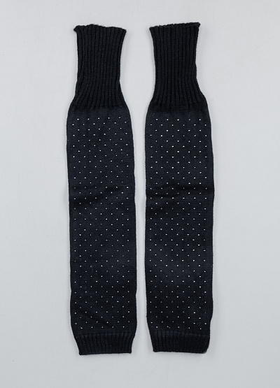 • Стильные черные удлинённые митенки (перчатки без пальцев) с декором из мелких страз — универсальный и элегантный аксессуар для холодного сезона. Мягкая вязаная ткань комфортно прилегает к рукам, обеспечивая тепло и свободу движений. Удлинённая форма защищает кисть и часть предплечья, а аккуратный блеск страз добавляет образу деликатный и утончённый акцент. Отлично сочетаются с пальто, куртками и объемными свитерами.