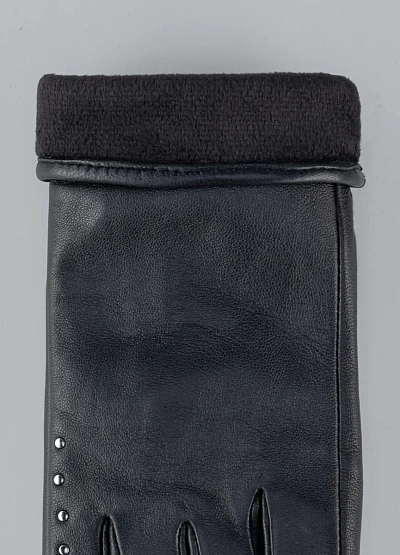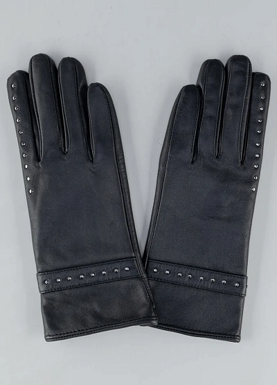 • Женские кожаные перчатки с лаконичным дизайном и аккуратным декоративным акцентом. Модель выполнена из натуральной кожи с мягкой, гладкой фактурой, благодаря чему перчатки удобно сидят на руке и сохраняют элегантный внешний вид. Декор в виде металлических заклёпок по краю и на манжете добавляет изделию современный характер, не перегружая образ.