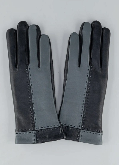 • Женские кожаные перчатки выполнены в стильном двухцветном дизайне с сочетанием чёрного и серого оттенков. Модель смотрится современно и элегантно, подчёркивая аккуратный вкус. Натуральная кожа отличается мягкостью и эластичностью, обеспечивая комфортную посадку по руке. Декоративная прострочка и контрастные вставки добавляют выразительности и делают аксессуар универсальным дополнением к повседневным и деловым образам.