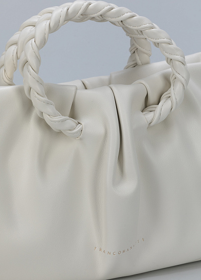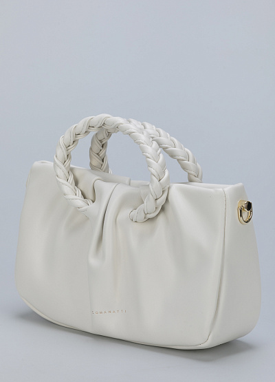 • Сумка из экокожи от бренда Franco Manatti. Две устойчивые кольцевидные ручки с плетением. Регулируемый плечевой ремень в комплекте. Застежка-молния. Золотая фурнитура.