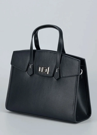 • Классическая сумка  Loretta Very с жёстким каркасом в чёрном цвете — безупречное решение для делового стиля. Минималистичный дизайн и золотистая поворотная застёжка придают аксессуару элегантность и уверенность.