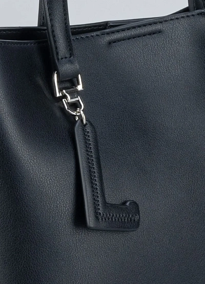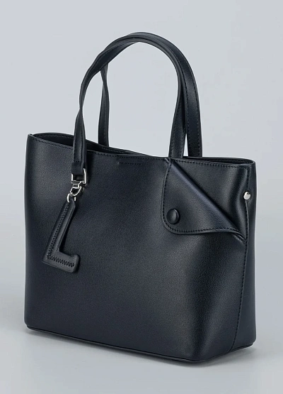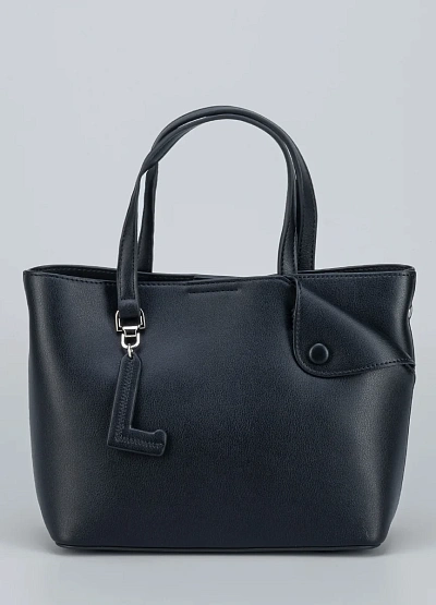 • Небольшая сумка-тоут Loretta Very с оригинальной застежкой-клапаном и декоративной буквой «L». Выполнена из гладкой черной экокожи, подходит для тех, кто ценит минимализм и удобство.