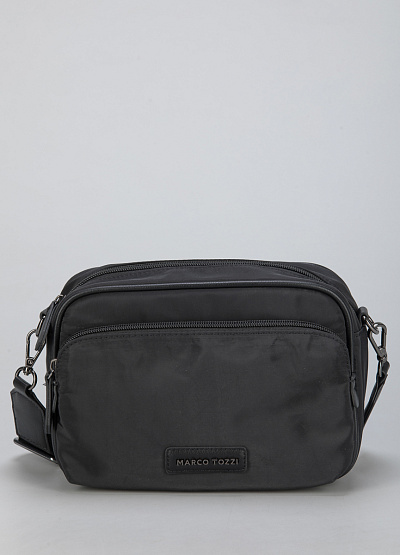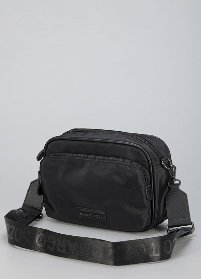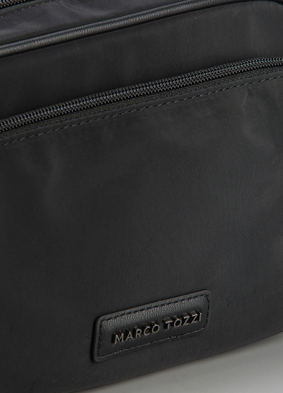 • Женская сумка из экокожи и текстиля от брендаMarco Tozzi. Несколько отделений. Застежка на молнии. Широкий ремень на плечо с регулировкой длины с логотипом. Логотип по центру.