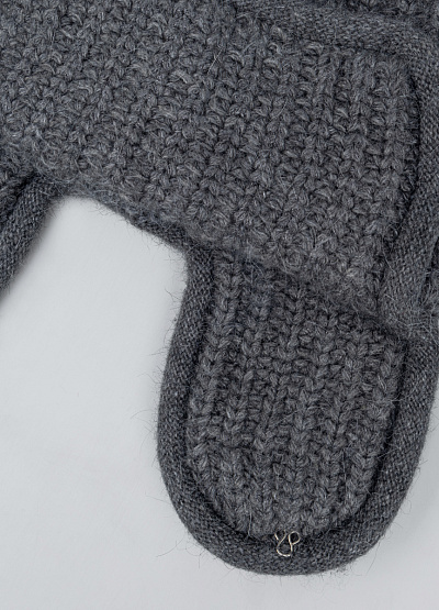 • Женская вязаная шапка-ушанка Thomas Graf в глубокосером оттенке — тёплый и стильный аксессуар для холодного сезона. Объёмная фактура крупной вязки создаёт уютный, современный образ, а мягкая пряжа дарит комфорт даже в морозную погоду. Удлинённые «ушки» обеспечивают дополнительную защиту от ветра и могут фиксироваться при помощи аккуратных металлических элементов — практичное решение для активных прогулок и поездок.