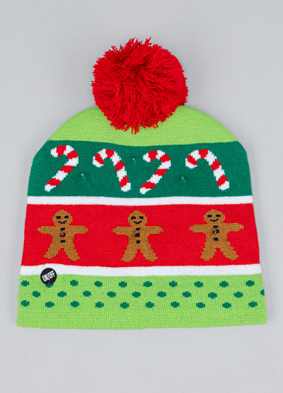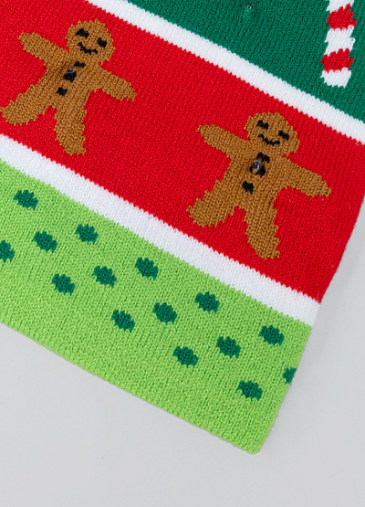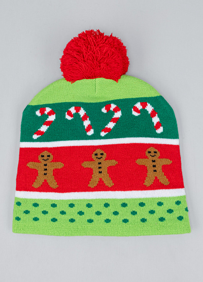 • Яркая новогодняя шапка с помпоном Pacco Rosso — идеальный аксессуар, который моментально создаёт праздничное настроение. Модель выполнена в насыщенных зелёно-красных тонах и украшена зимними мотивами: леденцами и пряничными человечками. Мягкая вязка обеспечивает комфорт и тепло, а объёмный красный помпон добавляет образу игривости. Шапка прекрасно держит форму и станет ярким акцентом зимнего гардероба.