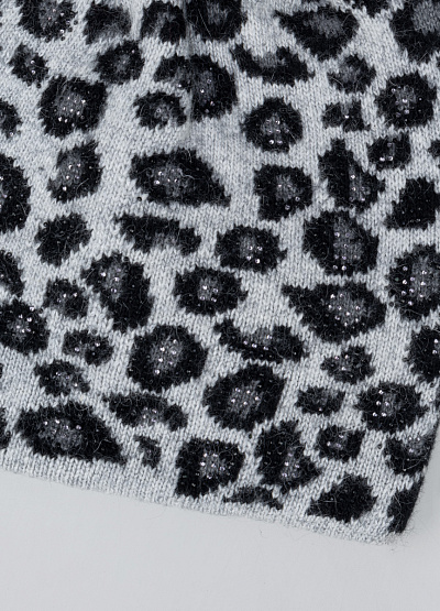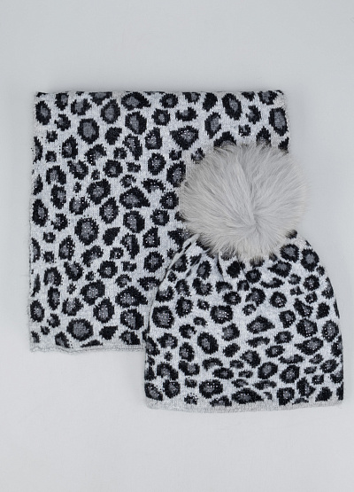 • Стильный зимний комплект ― шапка с помпоном и шарф-снуд ― выполнен в эффектном леопардовом принте в серо-черной гамме. Мягкая вязаная ткань с добавлением легкого блеска обеспечивает комфорт и тепло, делая аксессуары не только практичными, но и выразительными. Пышный пушистый помпон придает шапке уютный и модный акцент, а снуд легко драпируется, надёжно защищая шею от холода и ветра.