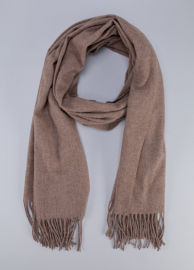 Женский шарф бежевого цвета от бренда Loretta Very. Модель выполнена из теплой ткани. Это не только аксессуар, но и полезная вещь, особенно в прохладное времена года. Шарф помогает защититься от холода и ветра, а также может быть стильным дополнением к вашему образу за счет бахромы по краям.