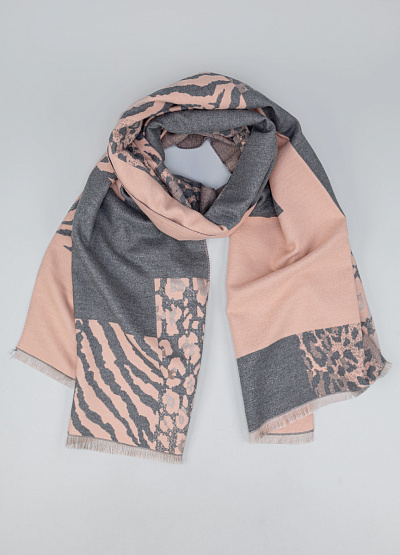 • Элегантный женский шарф в сочетании нежного пудрового и глубокого серого оттенков создан для тех, кто ценит мягкие, утончённые акценты в образе. Анималистичные вставки в виде зебры и леопардового узора делают аксессуар стильным и современным, не перегружая дизайн. Материал приятный на ощупь, хорошо драпируется и подходит для прохладной погоды.