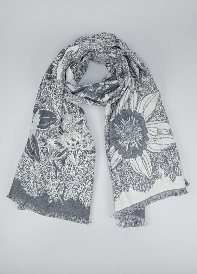 • Элегантный шарф с крупным цветочным рисунком — стильный и уютный аксессуар, который добавит женственности и выразительности зимним и осенним образам. Мягкая ткань приятна на ощупь, хорошо драпируется и обеспечивает комфортное тепло. Контрастный рисунок в оттенках серого и молочного цвета создаёт утончённый визуальный эффект. Короткая мягкая бахрома по краям придаёт шарфу аккуратное завершение.