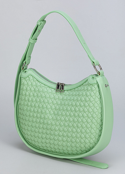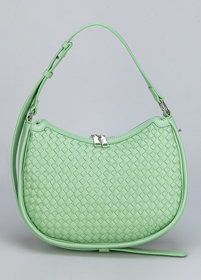 • Женская сумка нежно-зелёного цвета с плетёной текстурой — свежий акцент в вашем образе.