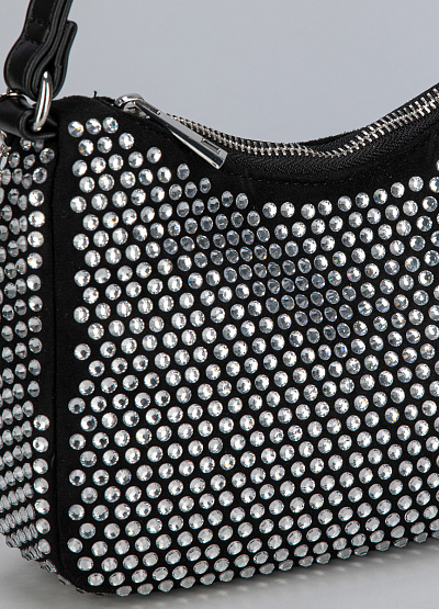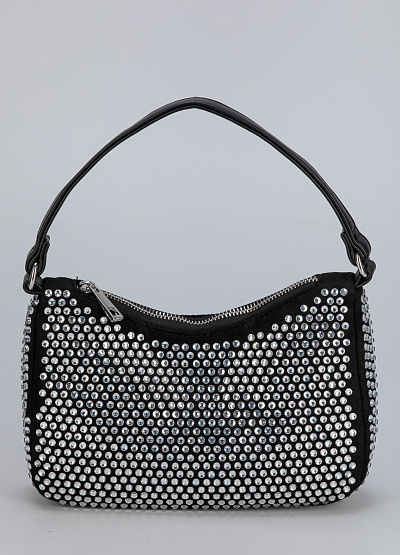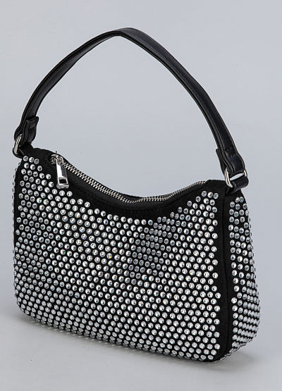 • Женская сумка Franco Manatti — эффектный аксессуар для модных и уверенных в себе девушек. Модель выполнена в чёрном цвете и полностью украшена крупными серебристыми стразами, создающими яркое свечение при любом освещении. Компактная форма и короткая ручка придают изделию современный, коктейльный стиль. Удобная застёжка-молния обеспечивает надёжность хранения ваших мелочей.