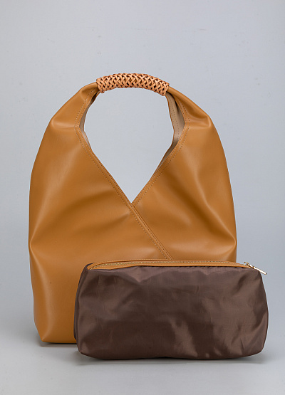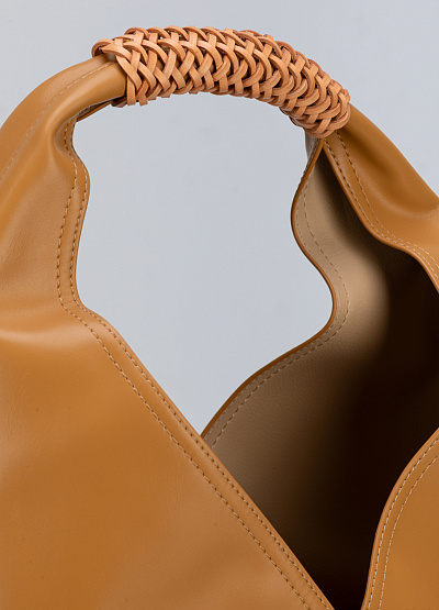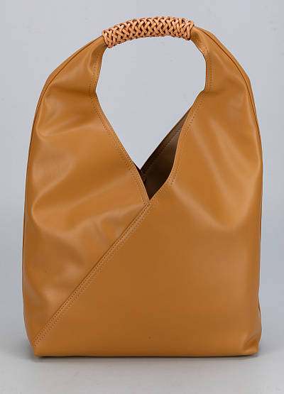 • Карамельная сумка-шоппер с плетёной ручкой: