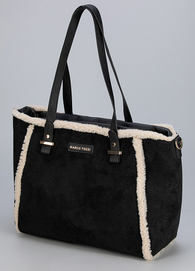 • Женская сумка Marco Tozzi в чёрном цвете — стильное сочетание практичности и уюта. Модель выполнена из мягкого материала под замшу и декорирована вставками из искусственного меха по краям, что придаёт ей зимний характер и трендовую выразительность. Просторное внутреннее отделение и длинные ручки делают сумку удобной для повседневного ношения, а лаконичный дизайн подходит к любому образу.