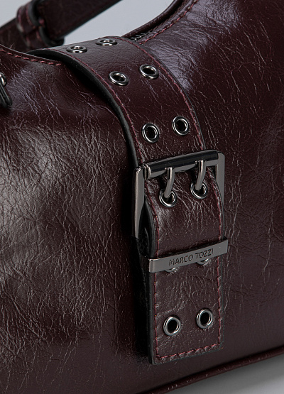 • Стильная женская сумка Marco Tozzi в насыщенном винно-бардовом оттенке — находка для тех, кто любит сочетание элегантности и дерзкого акцента. Лаковая фактура придаёт сумке благородный блеск, а декоративный ремень с крупной пряжкой добавляет модный рок-шик. Компактная форма «багет» идеально смотрится как с повседневными образами, так и с вечерними нарядами.