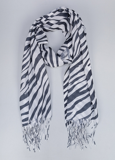 • Женский шарф с зебровым принтом — эффектная деталь для выразительного образа.