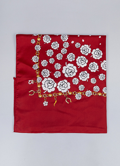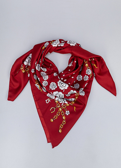 • Платок в бордовом цвете с цветочным и цепочным принтом — акцентный аксессуар с характером: