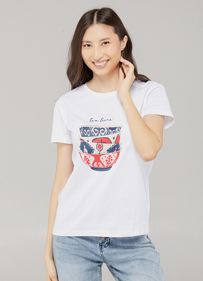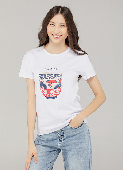 • Лёгкая и стильная футболка в белом цвете с оригинальным принтом в виде традиционных пиал и надписью "tea time" — это сочетание национального акцента и современной эстетики. Выполненная из мягкого хлопкового трикотажа, она идеально подходит для повседневных образов с лёгким настроением.