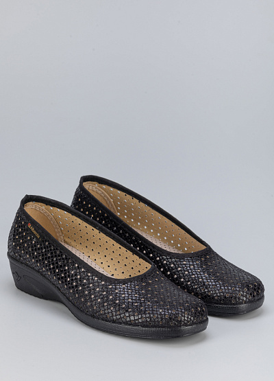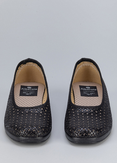 Женские балетки черного цвета от бренда Alberola. Модель служит не просто стильным дополнением, а отдельно играющим элементом вашего образа. Подошва с небольшим каблуком и удобная колодка создают удобства для стопы в течение всего дня. Сквозная перфорация позволит стопе дышать целый день и отводить лишнюю влагу.