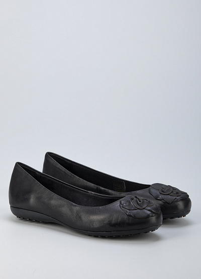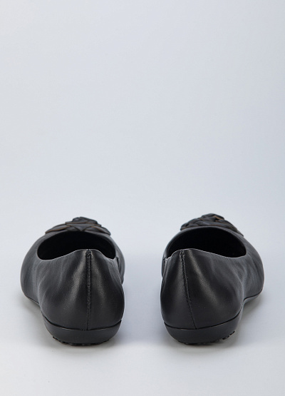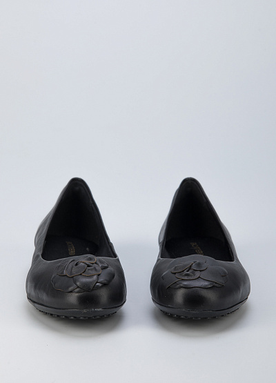 • Балетки из натуральной кожи от бренда Bottero. Закругленный носок. Декор в виде цветка в тон. Плоская рифленая подошва на низком каблуке.