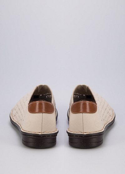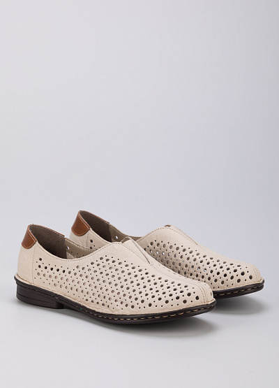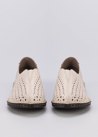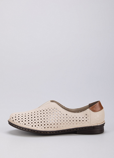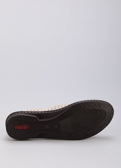 • Балетки из натуральной кожи и экокожи от бренда Rieker. Закругленный носок. Сквозная перфорация. Эластичная вставка по центру. Плоская подошва на низком каблуке.