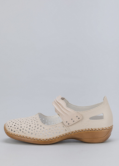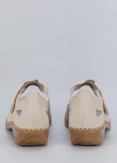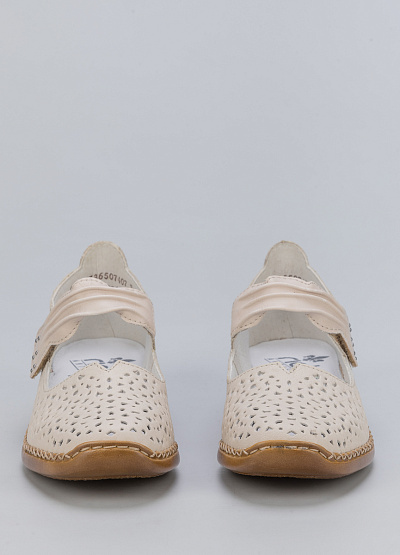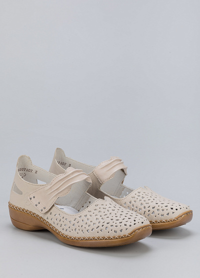 • Женские балетки из натуральной кожи и экокожи от  бренда Rieker. Закругленный носок. Застежка-липучка на щиколотке. Плоская подошва на низком каблуке.