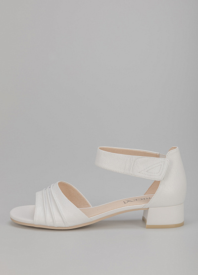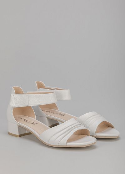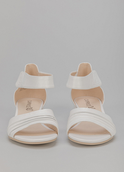 • Босоножки белого цвета из натуральной кожи от бренда Caprice. Модель с открытым носком. Застежка-ремешок на щиколотке. Закрытый задник. Средний каблук.