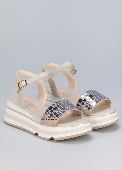 Женские босоножки бежевого цвета из экокожи от бренда Keys. Трендовая модель на широкой подошве сделает шаг уверенным и эффектным. Босоножки, которые стали настоящим трендом и придадут образу элегантность, индивидуальность и креативность за счет своего декора.