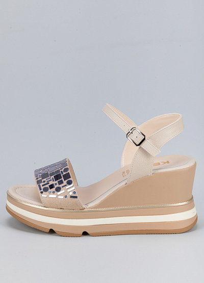 • Женские босоножки бежевого цвета из экокожи от бренда Keys. Трендовая модель на танкетке сделает шаг уверенным и эффектным. Босоножки, которые стали настоящим трендом и придадут образу элегантность, индивидуальность и креативность.