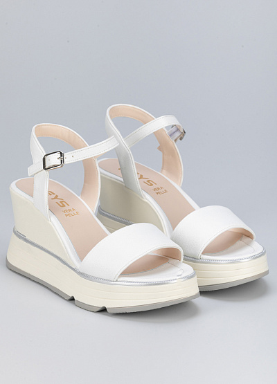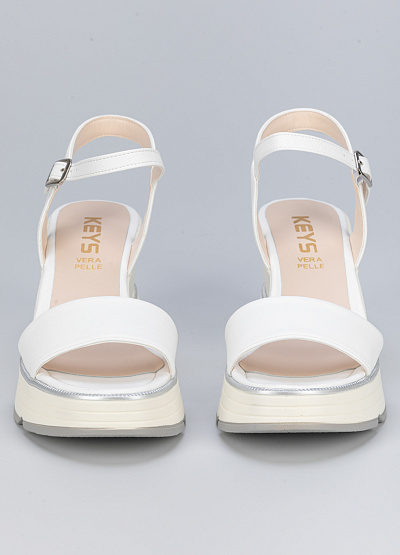 • Женские босоножки белого цвета из экокожи от бренда Keys. Трендовая модель на танкетке сделает шаг уверенным и эффектным. Босоножки, которые стали настоящим трендом и придадут образу элегантность, индивидуальность и креативность.