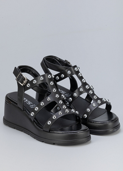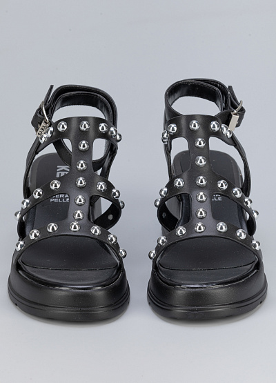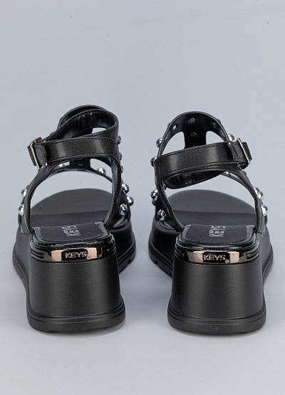 • Женские босоножки черного цвета из экокожи от бренда Keys. Трендовая модель на танкетке сделает шаг уверенным и эффектным. Босоножки, которые стали настоящим трендом и придадут образу элегантность, индивидуальность и креативность за счет своих металлических декоративных заклепок.