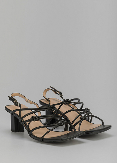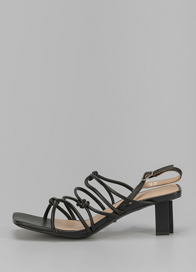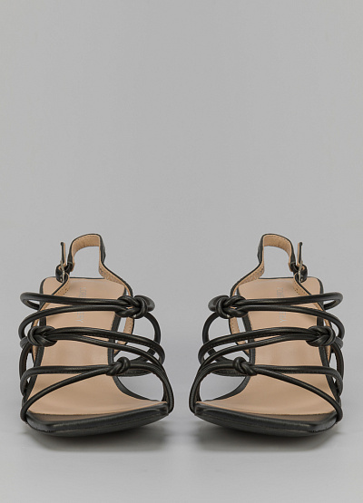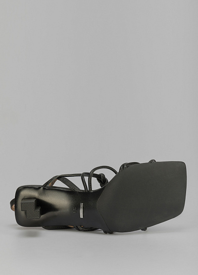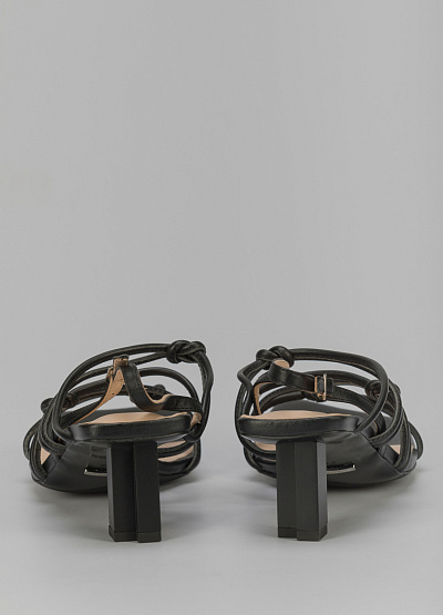 • Кожаные босоножки черного цвета от итальянского бренда Loretta Very. Модель с открытым, квадратным носком и открытой пяткой. По подъему множественные, перекрещивающиеся перемычки. Застежка-ремешок на щиколотке.