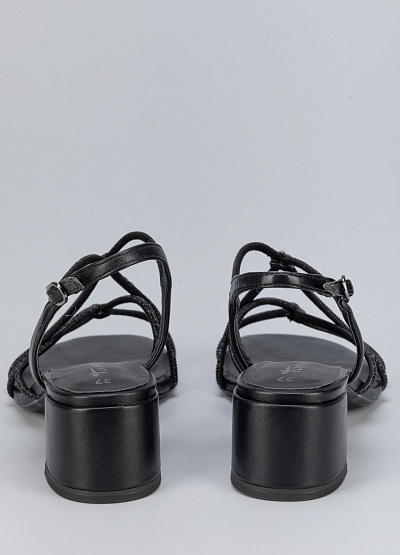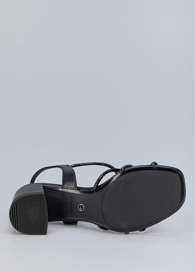 • Женские босоножки черного цвета из экокожи и текстиля от бренда Tamaris. Они служат не просто стильным дополнением, а отдельно играющим элементом вашего образа за счет мелких, переливающихся страз. Открытая пятка и носок придадут уникальности, а плоская подошва на широком каблуке сделает шаг уверенным.