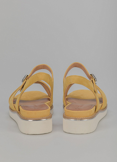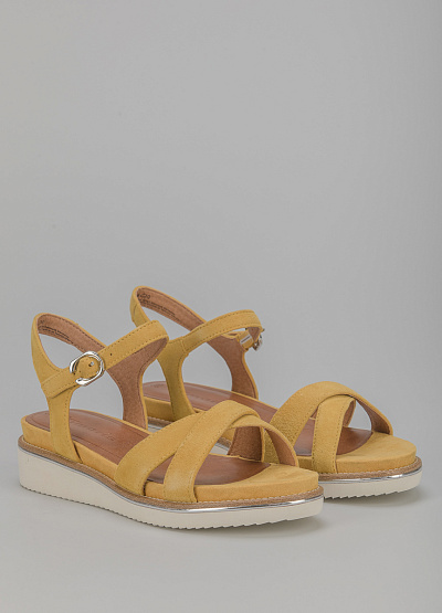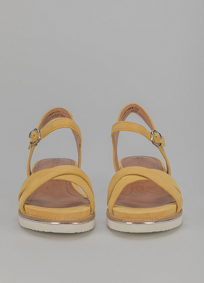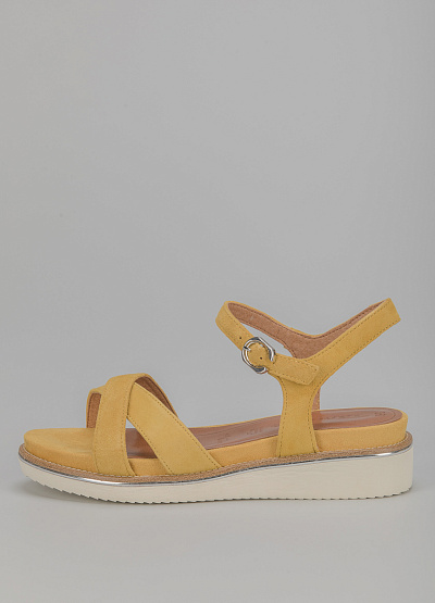 • Босоножки из натуральной кожи от бренда Tamaris. Модель с открытым мысом. Застежка-ремешок на щиколотке. Танкетка.